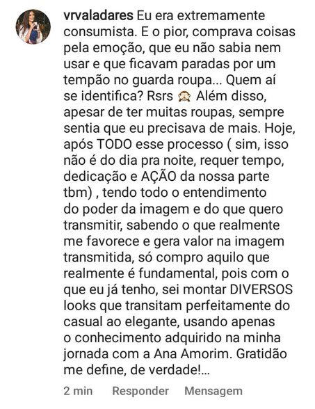 Hoje dedico meu conhecimento e experiência para ajudar outras mulheres a se transformarem, por meio de sua imagem, em protagonistas para realização dos seus sonhos.