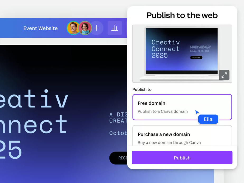 O poder criativo do Canva agora com todas as ferramentas de um site profissional.