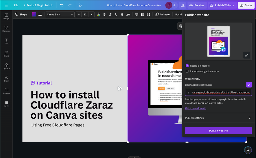 Canva Plugin turns hosting your Canva Sites on Cloudflare into a piece of cake, and guess what?