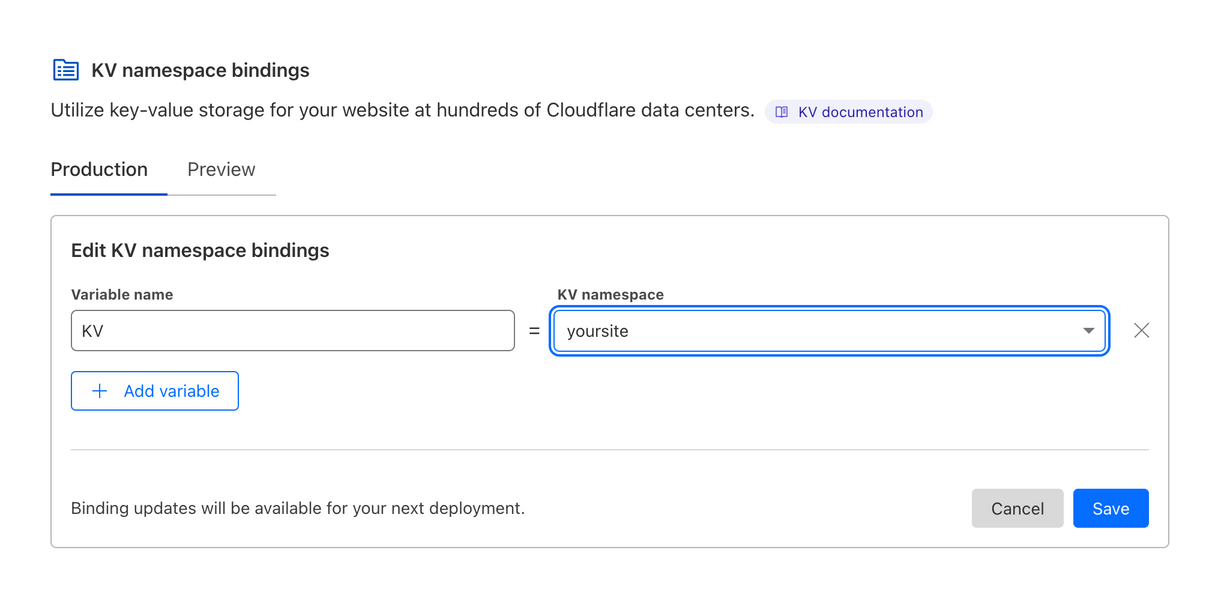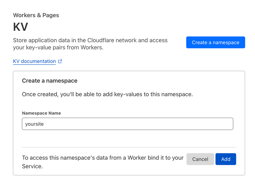 Create a KV Database for your site