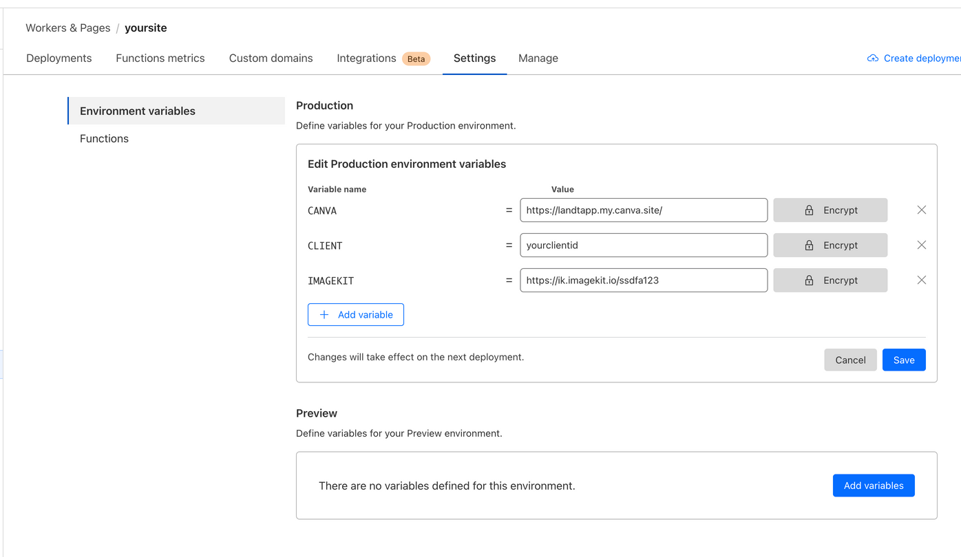 Add Enviroment variables on Production