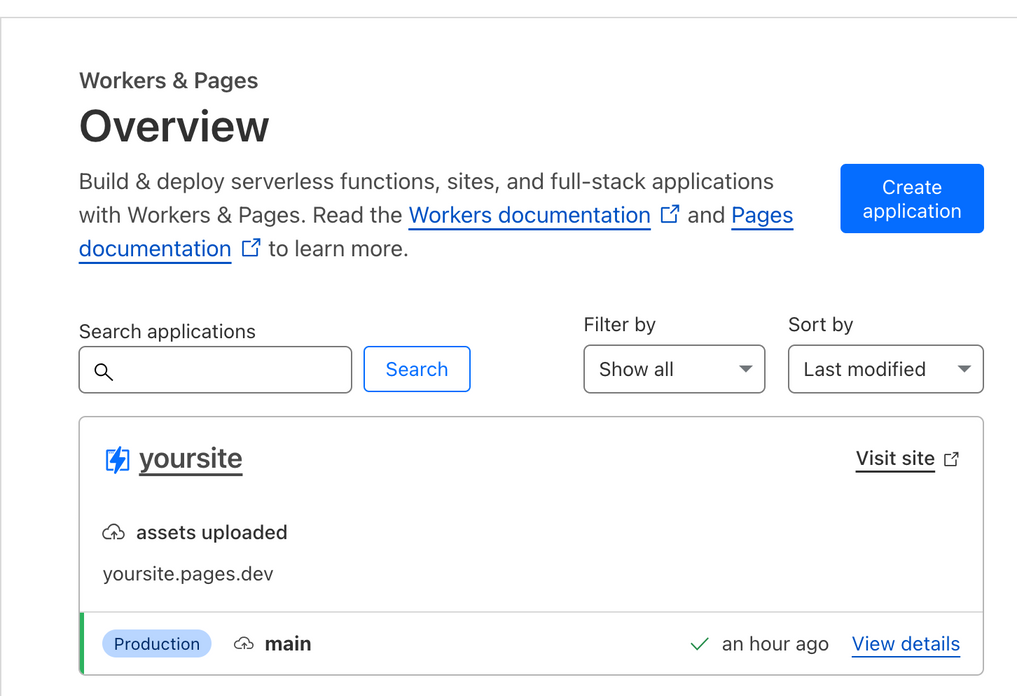 Click on Overview on Workers & Pages and in the Name of your site