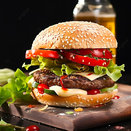 Pão de australiano com hambúrguer copa Lombo (180g), cebola, tomate confitado, alface, molho barbecue, queijo cheddar