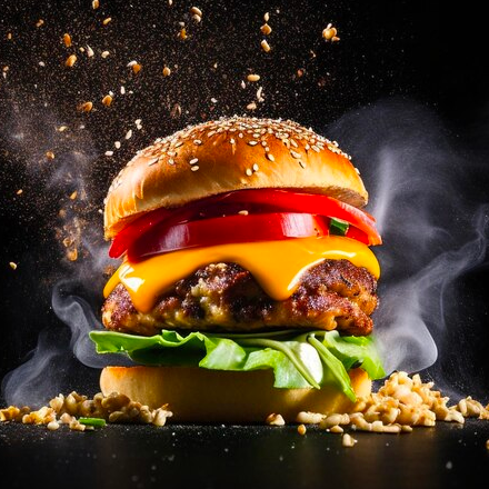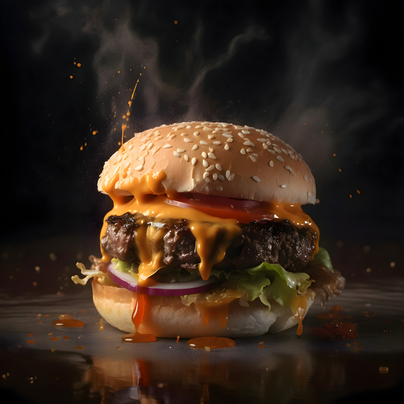 Pão australiano com hamburguer de abóbora ou brócolis, alface, cebola, tomate confitado, bacon vegano, molho especial, queijo cheedar e fritas.