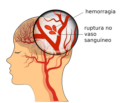 O AVC hemorrágico ocorre quando há rompimento de um vaso cerebral, provocando hemorragia.
