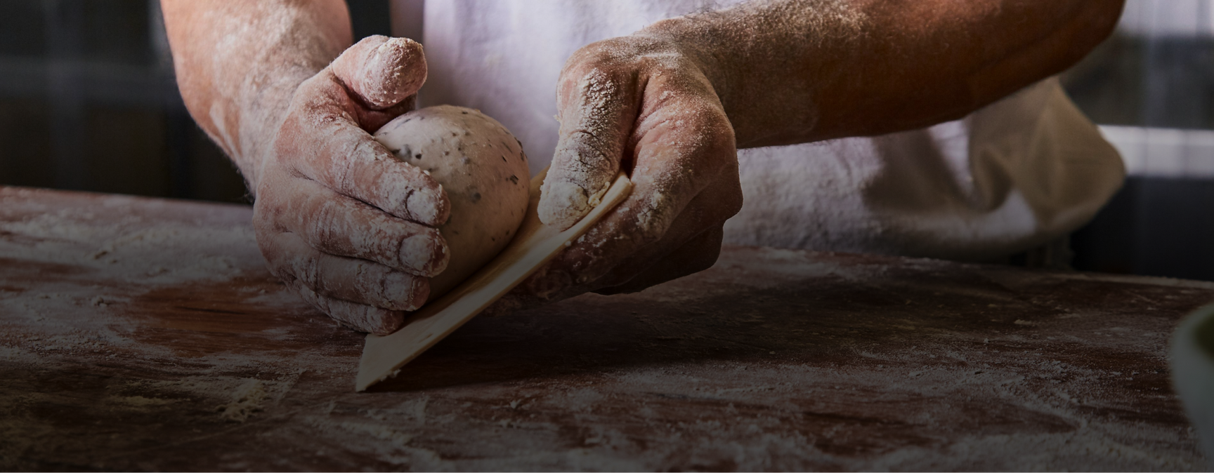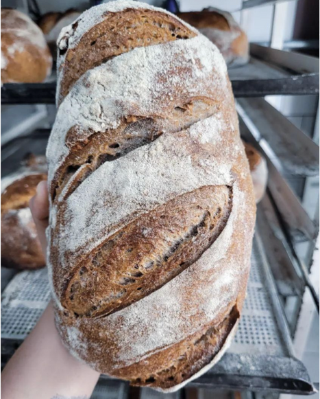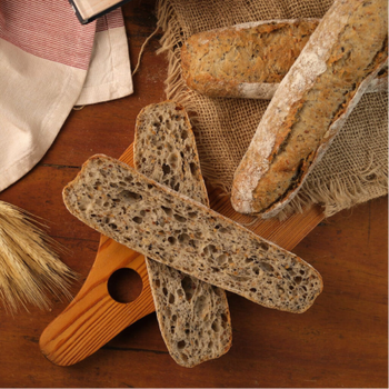 Nosso preparo combina fermentação natural, massas altamente hidratadas e longas horas de maturação. O resultado é um pão muito mais saudável e cheio de sabor, com miolo macio e casca crocante.